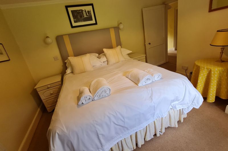 The house has four double bedrooms, 2 with king size beds and 2 with twin beds, all with fitted wardrobes. Upstairs bathroom with bath, wash hand basin and lavatory.