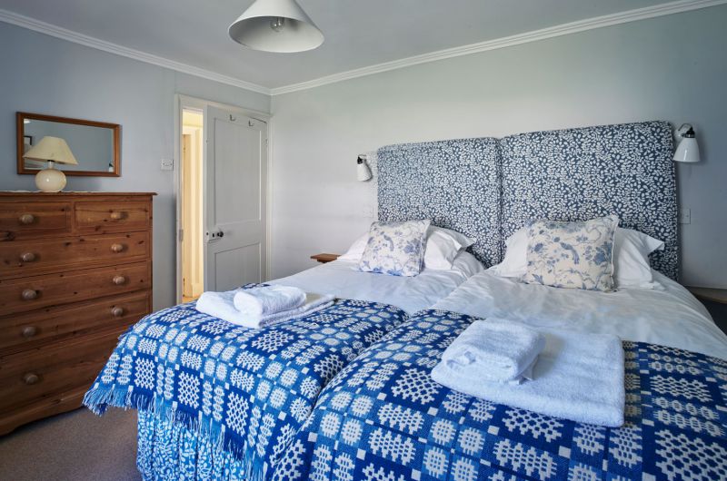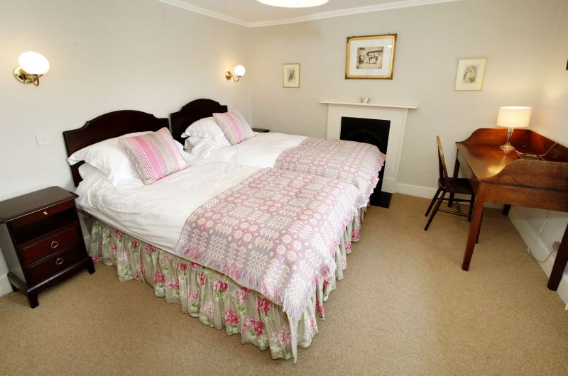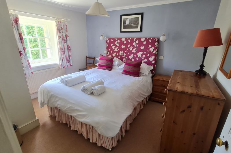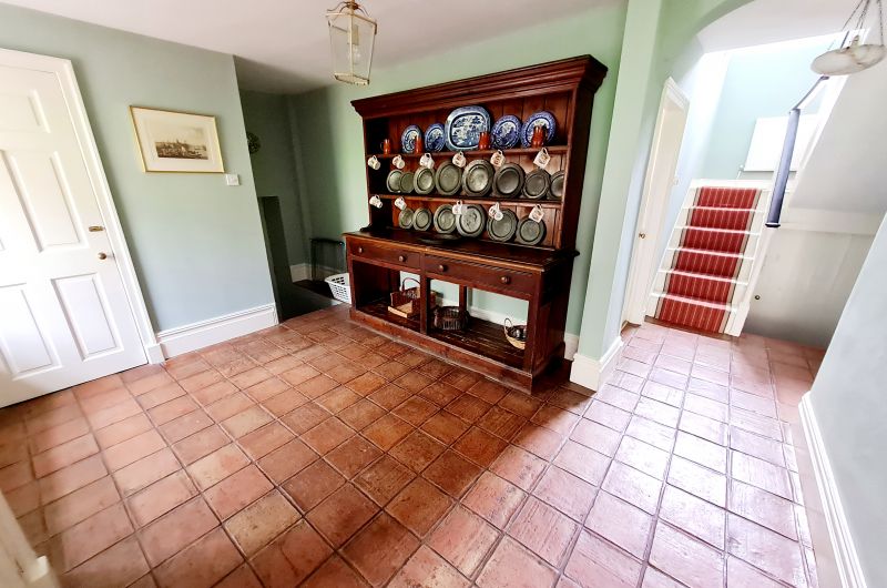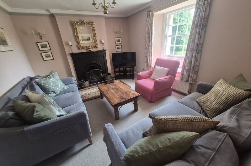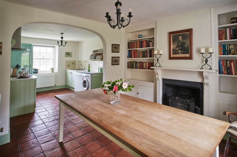 There is a fully equipped kitchen with electric cooker and induction hob, dishwasher, washer/drier, microwave, large fridge freezer. The other end of the kitchen is a dining area with a big table and an open fire. The sitting room is pretty and comfortable with an open fire and SMART TV. There is also a hall with large dresser and downstairs shower room with shower, wash hand basin and lavatory.